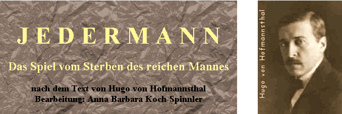 Jedermann - da assoziieren sicherlich viele unserer treuen (erwachsenen) Zuschauer sofort "Salzburger Festspiele", hören den unheilschwangeren Ruf zum Jüngsten Gericht hallen - und denken sich vielleicht: Warum musste es denn ausgerechnet dieses Stück für ein Schultheater-Unternehmen sein? Zugegeben - gegen fertige Bilder im Kopf und eine derart bekannte Parabel anzuspielen, ist nicht einfach. Auch fehlt den jugendlichen Darstellern häufig noch die gedankliche Auseinandersetzung mit den gezeigten Erfahrungen - Grund genug, dass sich viele Jugendtheaterprojekte an dieses Stück nicht herantrauen. Zumal in diesem wahrlich "todernsten" Spiel komische Akzente, die ja doch immer Garanten für die spontane Anteilnahme des Publikums sind, nur sehr vereinzelt aufblitzen. Wir haben's trotzdem gewagt. Die offensichtlichste Motivation der Spielgruppe bestand darin, dass wir glauben, gerade die Erwartungen des Publikums hinsichtlich überwiegend heiterer Unterhaltung in den letzten Jahren bei unserer Stückwahl wohl ausreichend berücksichtigt zu haben (A. im Wunderland; Yvonne, die Burgunderprinzessin; Lysistrata... um nur einige zu nennen). Deutlich artikuliert wurde deshalb besonders von den älteren Mitgliedern der Wunsch, sich heuer mit einem Stoff auseinander zu setzen, der eine vorwiegend ernsthafte Betrachtung erfordert. Allerdings sind derartige Stücke für 33 Spielbegeisterte mit zudem doch recht unterschiedlicher Bühnenerfahrung nicht gerade zahlreich zu finden.