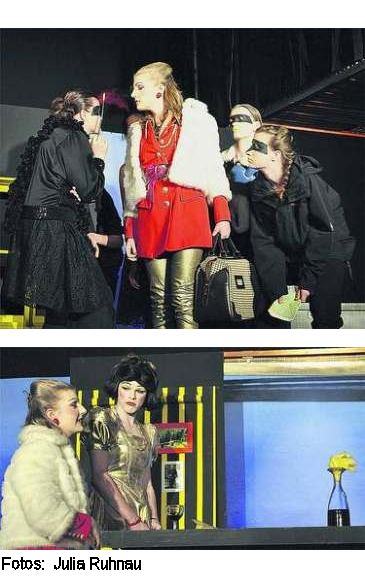 Herr Adrian (Frederik Zöls) lebt als schrulliger Junggeselle von den Hinterlassenschaften seines verschollenen Onkels Fabian. Außer einer Vorliebe für zweifelhafte dichterische Ausbrüche ist er nicht mit praktischen Gaben gesegnet. Haushälterin Berta (Nina Schultz), die seinen Tagesablauf von morgens bis abends organisiert, muss ihm sogar bei der Hemdankleide unter die Arme greifen. Dafür hat sie der Hausherr als Alleinerbin eingesetzt. Begleitet wird der düstere Alltag der beiden nur vom permanenten Gekrächze einer Rabenschar, deren Zuneigung sich Herr Adrian durch kleine Leckerbissen erkauft. Soweit vermittelt sich der Eindruck einer spröden Koexistenz von Hausherr und Hausdame im eintönigen Rhythmus von Tag und Nacht, bis die Bewohner vom Besuch einer Tante Cosima (Mara Göbel) überrascht werden, die mit ihrer rotzfrechen Tochter Elsbeth (hinreißend gespielt von Phillip Link) auf der Bildfläche erscheint. Cosima erhofft sich Anteil an Adrians Reichtum und schlägt eine Liaison mit Elsbeth vor, die sich aber, passend bekleidet mit Springerstiefeln, Perücke und Goldgewand, vor allem durch kokette Annäherungsversuche, plötzliche Wutausbrüche und Angriffe mit der Steinschleuder hervortut. Da offenbart der bisher so unbedarft wirkende Adrian seine dunkle Seite. Beim Tischgespräch mit Wein und Senf, den Adrian in schrulliger Manier pur mit dem Löffel verspeist, weist er Cosima auf die wahre Identität der Rabenschar hin, die bis dahin ungefragt mit lauten „Kra-kra“ das Geschehen kommentiert. Die Vögel entpuppen sich als gefiederte Inkarnationen der restlichen Familienmitglieder, die Adrian mit schwarzer Magie ins Reich der Tiere gehext hat, da sie ihm sein Vermögen streitig machen wollten. Cosima und ihren Anhang ereilt prompt das gleiche Schicksal, vor dem sie auch nicht ihr mitgereister Leibwächter Raoul Dohlenburg (Ben Westerath) beschützen kann. Dieser stellt sich als letzter übriggebliebener Verwandter Onkel Nikolaus heraus und wird schließlich von der mütterlichen Berta, die sich Adrians Zauberkünste abgeschaut hat, ebenfalls zum Rabendasein verdammt. Damit erweist sie sich gegen Ende als wahre Hausherrin, unter deren Fuchtel Adrian nun sein Dasein fristen muss, will er nicht selbst in Gefahr geraten, als Rabe zu enden oder ein selbstständiges Leben führen zu müssen. Ein solides Schauspiel mit einigen Überraschungen und schrägem Humor, dem die Unerfahrenheit der Schauspieler nur teilweise anzumerken war, das dank der bewährten Teamarbeit von Petra Vetter (Regie), Walter Flintsch (Technische Leitung) und Wolfgang Völkl (Musik) sowie kreativem Bühnenbild und engagierter Schauspieltruppe aber an die Tradition des Theaters am Leibniz anknüpfen kann. |