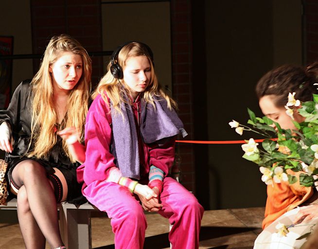 Dazu haben wir uns an das eher der Filmtechnik entstammende dramaturgische Mittel des ineinander Schneidens der drei Szenen herangewagt, um - sozusagen parallel – die sich zuspitzende Entwicklung in den einzelnen Konstellationen vor Augen zu führen. Dies ermöglicht – neben aller Wort- und Situationskomik – auch die Verdichtung von Ayckbourns Konzeption, alle seine Figuren an einen Punkt zu führen, an dem sie eigentlich etwas Entscheidendes in ihrem Leben ändern könnten. Die Betonung liegt aber eben auf dem Konjunktiv! Zur Gruppe: Sieben SpielerInnen aus dem letzten Jahr fehlen uns heuer, dafür sind fünf neue Spielerinnen (kleines i!) „nachgewachsen“ und haben sich bereits sehr gut als Verstärkung etabliert. Wie in nahezu allen Oberstufen-Schultheatergruppen, ist auch bei uns das darstellende Spiel zunehmend eine weibliche Domäne geworden, was natürlich die Auswahl und Umsetzung von Stücken stark steuert und unsere beiden „mutigen“ Jungs in eine besondere Position versetzt. Vielleicht steckt aber Mut ja doch auch an????